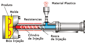 O processo de injeção de termoplásticos se inicia com grânulos de plástico que são derretidos(plastificados) dentro de um cilindro em uma máquina (injetora) sendo injetados em um molde (ferramenta) e após esfriado é retirado (extraído) do mesmo completando o ciclo.